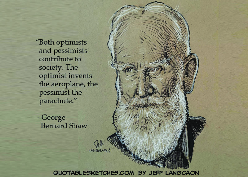 “Both optimists and pessimists contribute to society. The optimist invents the aeroplane, the pessimist the parachute.” – George Bernard Shaw
