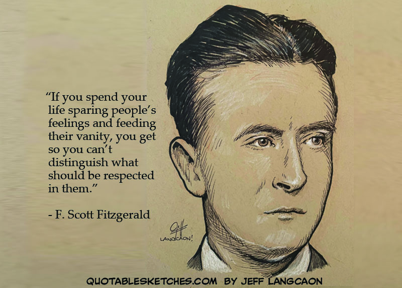 “If you spend your life sparing people’s feelings and feeding their vanity, you get so you can’t distinguish what should be respected in them.” – F. Scott Fitzgerald